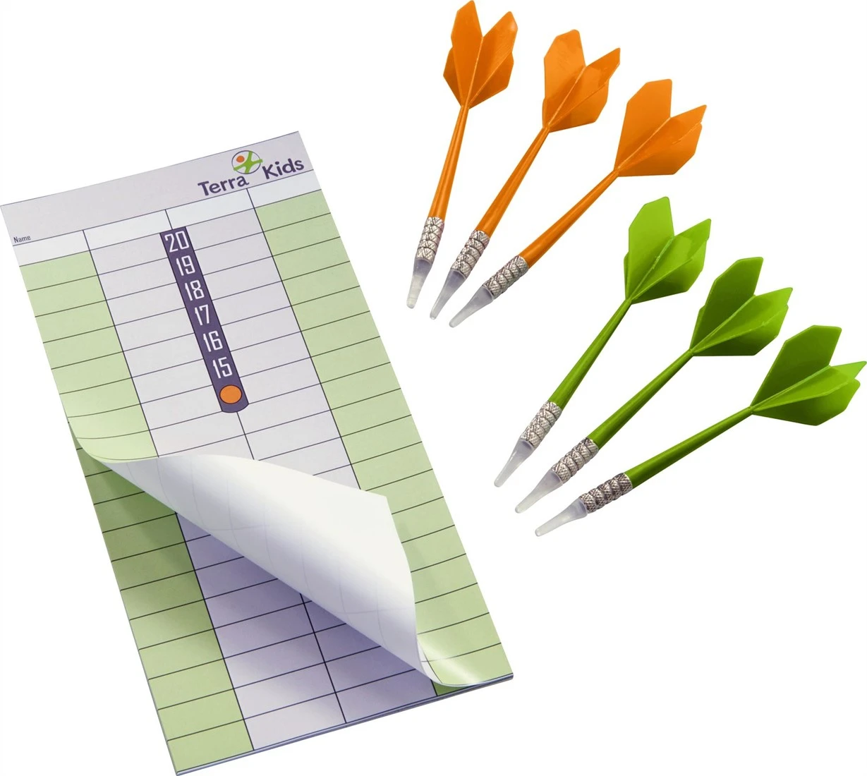 6 Pfeile, 1 Scoreblock.