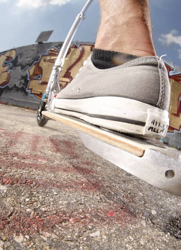 Elegant, kompakt und komfortabel, das ist der Micro Scooter Flex. Sein flexibles Trittbrett aus Holz und Fiberglas schwingt mit der Bewegung beim Fahren mit und fängt so Erschütterungen auf unebenen Fahrbahnen gekonnt ab. Ideal für entspannte Citytouren oder als Begleiter auf dem Weg zur Arbeit. Die hochwertigen Rollen aus PU (Polyurethane) sind 145 mm gross und sorgen durch die weiche Beschaffenheit für zusätzlichen Komfort.